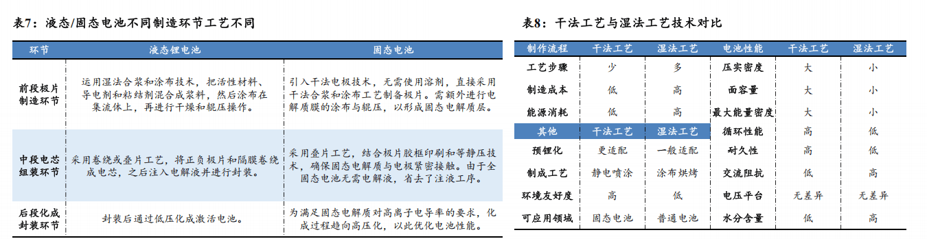 固态电池带动出产工艺变化,降本提效驱动下干法设备将成前段焦点增量。因为全固态电池采用全新的材料系统取电池布局,正在锂电池制制前中后段的出产工艺均需调整,此中前段极片制制环节的焦点变化是由湿法合浆和涂布手艺改变为干法电极手艺。